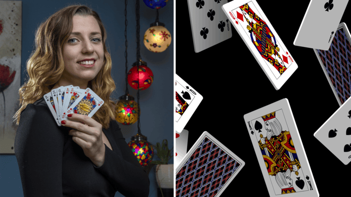 Hij zat daar altijd met dezelfde twee of drie mensen te kaarten. Dus jij wilt het Omdenken Kaartspel spelen. Een professional als goochelaar Jordi manipuleert niet alleen kaarten hij speelt vooral met mensen.